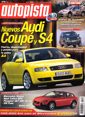 Contacto: Volvo SCC, Opel Zafira Turbo OPC, VW Polo. Anticipación: Audi Coupé y A4 S4. Prueba del Jeep Cherokee Sport 2.5 CRD. Prueba de larga duración con la Mercedes V220 CDI. Publi-reportaje: Saab 95 TiD. Contacto: Mercedes Vaneo, Peugeot 307 HDI. Técnica: la competición como generadora de tecnología. XVIII Salón Auto Retro de Barcelona. Prueba Racing: Ferrari 360 Modena GTA. Rallye de Australia.