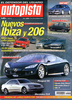 Nuevo Mercedes CLK. Contacto: Mercedes Clase E, Seat León Cupra R, MG TF, Honda Civic CTDi. Prueba Comparativa: Opel Corsa 1.7 DTI Elegance/Peugeot 206 1.4 HDI XT/Toyota Yaris 1.4 D4-D Luna. Prueba Comparativa: Seat Ibiza 1.4/Ibiza TDi 100 CV. Anticipación: nuevo Fiat Panda. Prueba del Saab 9-5 2.3 TS Aero. Prueba de larga duración: Alfa Romeo 166 2.4 JTD. Nuevo Peugeot RC. Planes deportivos de Seat. Renault Clio Super 1600.