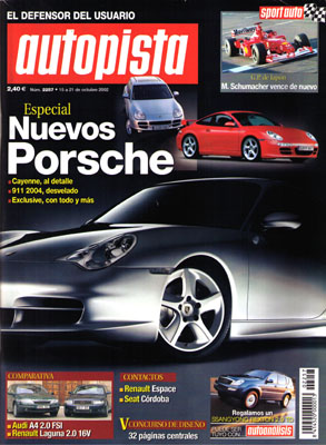 Contacto: Seat Córdoba, Renault Espace. Técnica: Porsche Cayenne. Anticipación: Porsche 911 2004. Porsche Exclusive: ejemplares únicos. 50º aniversario del Chevrolet Corvette. Diseño: el mundo en evolución. V Concurso de Diseño AUTOPISTA. Prueba Comparativa: Audi A4 2.0 FSI/Renault Laguna 2.0 16v Privilege. Prueba del Subaru Forester 2.0 X. G.P. de Japón de F1. Campeonato de España de GT: Jerez.