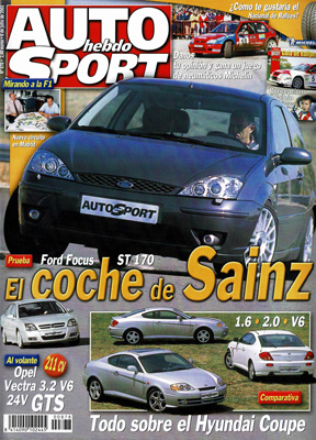 Prueba del Ford Focus ST 170. Prueba Comparativa: Hyundai Coupé 1.6 16v/Hyundai Coupé 2.0 16vv/Hyundai Coupé V6. Al volante del Opel Vectra 3.2 V6 24v GTS. Al volante del Porsche Boxster S. Mitsubishi Space Star 2003. Proyecto del Circuito de Pinto. Carreras en Estoril. Guía rallye de Avilés. Todas las pruebas regionales.