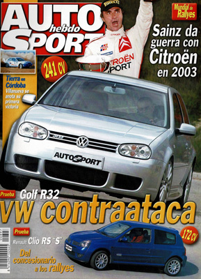 Prueba del VW Golf R32. Prueba del Renault Clio RS "S". Al volante del Mazda 6 AWD. Nuevo VW Touran. Nuevo Toyota Avensis 2.0 D4. Entrevista con Carlos Sainz. Nacional de GT, F3, Hyundai y Seat León. Rally de Palma del Río. Todas las pruebas regionales.