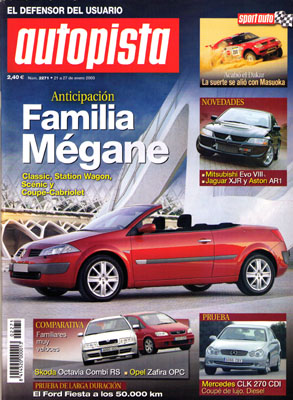 Nuevo Aston Martin DB AR1, Mitsubishi Carisma EVO VIII y Jaguar XJR. Anticipación de la nueva gama Renault Megane. Contacto los Renault Laguna 2.0T y 2.2 dCi Proactiva y Subaru Impreza WRX Turbo y STi 2003. Prueba del Mercedes CLK 270 CDI. Prueba de larga duración: 50.000 km con el Ford Fiesta TDCi. Prueba Comparativa: Opel Zafira OPC/Skoda Octavia RS Combi. Dakar 2003.