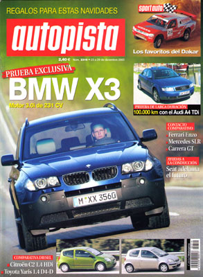 Prueba del BMW X3. Contactos: Fiat Stilo y Seat ADAS, e-Merge, Multimedia. Actualidad: Konzept Design en Munich. Prueba de larga duración del Audi A4 1.9 TDI. Comparativa virtual: Ferrari Enzo/Mercedes SLR/Porsche GT. Prueba Comparativa: Citroën C2 1.4 HDi/Toyota Auris 1.4 D4-D. Qué regalar en Navidad. Técnica: Mercedes V6 24V. Calendario Internacional 2004. Dakar 2004, los favoritos. Planes deportivos Renault para 2004.