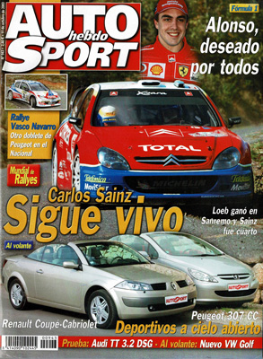 Al volante del Peugeot 307 CC, Renault Coupé-Cabriolet, Alfa Romeo 166 2004 y Volkswagen Golf V. Prueba del Audi TT 3.2 Quattro DSG. Fórmula 1: el mercado de fichajes. Avance del G.P. de Japón. Rallyes: Sanremo, Vasco Navarro. Entrevista a Dani Solà. Elpa Rallye. Avance GT, F3 y Seat León en Jerez.