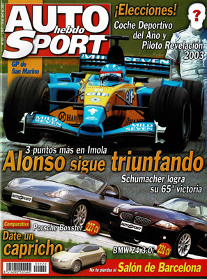 Avance del Salón Internacional del Automóvil de Barcelona. Prueba Comparativa: BMW Z4 3.0i/Porsche Boxster 2.7. Prueba del Ford StreetKa. Prueba del Lancia Thesis 3.0 V6 Emblema. Prueba del Renault Laguna 2.0 T. G.P. de San Marino. Fórmula 1 Histórica en el Circuito del Jarama. Previo de la Baja Aragón.