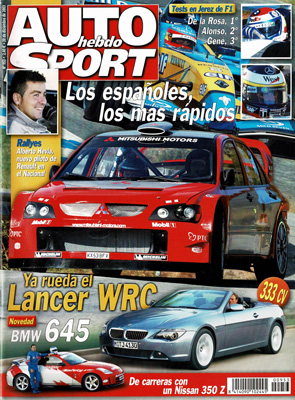 Prueba del BMW 320Cd. Prueba del Ford Focus C-MAX 2.0 TDCi Trend. Nuevos BMW 645 Cabrio y Volvo V50. Prueba Comparativa: Mitsubishi Outlander 2.4/Toyota RAV 4 2.0 VVT-i. Al volante del Honda Accord i-CTDi, Peugeot 307 2.0 HDI 136 CV y 206 1.4 16V, Citroën C2 y C3 SensoDrive. F1: tests en Jerez. Mundial de Rallyes: Tests de Mitsubishi en España. 1.000 km Hyundai en el circuito del Jarama. Prueba racing del Nissan 350 Z "Safety Car".