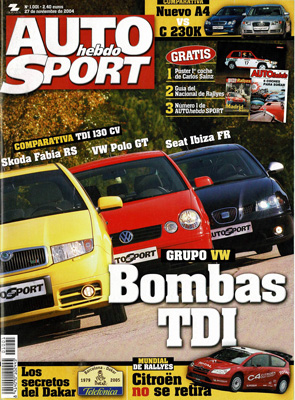 Prueba Comparativa: Volkswagen Polo GT TDI/Seat Ibiza FR TDI/Skoda Fabia RS TDI. Prueba comparativa: Audi A4 2.0T FSI/Mercedes C 230K. Nuevo Rover 75 Coupé y MG GT. Prueba del Jaguar XJ8 L 4.2 Executive. Fiesta 1.000 números de Auto Hebdo Sport. Actualidad de la F1. Preavance del Barcelona-Dakar.
