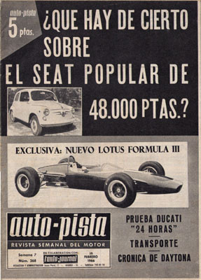 Las exportaciones a Iberoamérica. La verdad sobre el Seat 600 de 48.000 pts. Prueba de la Ducati 24 horas, una moto de quinientos ejemplares. Munguía Industrial quiere fabricar un 1.400cc. El Datsun Sports 1600. El rallye de Coches Veteranos Barcelona-Sitges. Ford toma la ventaja sobre Ferrari en las 24 Horas de Daytona. Lotus 41 de Fórmula III. Las principales casa europeas de turismos ante la competición. Ibi cuenta con las más importantes fábricas nacionales de vehículos. Las grandes firmas del automóvil en Brasil. IV Salón Náutico Internacional de Barcelona.