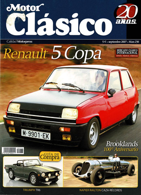 Dossier: Renault 5 Copa. Ayer: Jaguar MK X (1961-1970). A pie de calle: Mercedes-Benz 170 DA (1951). Deutsch-Bonnet. Mercedes-Benz 300 SEL AMG. Dos ruedas: Johnny Cecotto. Napier-Railton 1933. Aniversario Brooklands. Guía de compra: Triumph TR6.