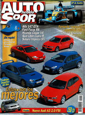 Prueba del Audi A3 2.0 FSi. Los 5 finalistas del Coche Deportivo 2003. Al volante: Nissan Almera 2.2 dCi 16V, Nissan Micra 1.5 dCi, Opel Signum, Toyota Corolla 2.0 D4D 116 CV, Skoda Fabia 1.2 55 CV/64CV. Motor Show de Zaragoza. G.P. de Austria de F1. Pruebas en el Jarma. Desafío Peugeot en Cantabria.