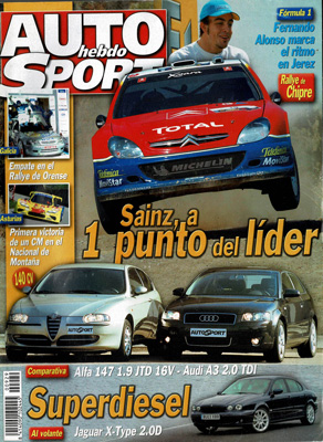 Prueba comparativa: Audi A3 2.0 TDi Ambition/Alfa Romeo 147 1.9 JTD Distinctive. Novedades: BMW X3, Ford Focus C-Max. Al volante: Jaguar X-Type, Alfa Romeo 156 GTA Selespeed. Rallye de Chipre. Rallye de Orense. Montaña: Subida a Santo Emiliano. Avance GP de Europa y tests en Jerez.