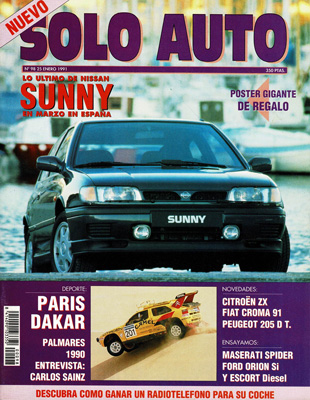 Prueba del Maserati Spider 2.8 SE. Prueba Comparativa: Ford Orion 1.6 Si/Ford Escort Diesel. Contacto con el Chrysler Eagle "Talon TSI-4WD". París-Dakar: un infierno en el desierto. Guía para el Rallye de Montecarlo. Javier del Arco entrevista a Carlos Sainz y Luis Moya. Palmarés automovilístico de 1990.