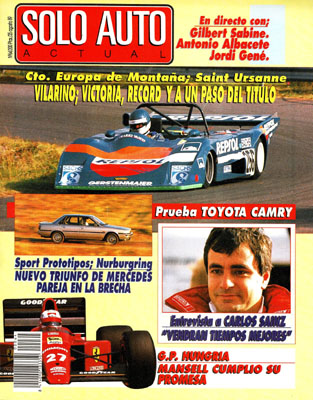 Entrevista a Carlos Sainz. Entrevista a Gilbert Sabine. Campeonato de España de Montaña: Subida a la Bien Aparecida. Entrevista a Antonio Albacete. G.P. de Hungría de F1. Prueba del Toyota Camry. Rallye Rías Bajas. Campeonato del Mundo de Sport-Prototipos: Nürburgring. Campeonato de Europa de Montaña: Saint Ursanne (Suiza).