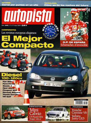 Prueba del Subaru Justy G3X 1.5 AWD. Contactos: Mini Cabrio, Hyundai Trajet, Citroën C3 Pluriel HDI. Prueba del Porsche Cayenne V6. Master test: 25 periodistas del motor de Europa buscan el mejor coche. G.P. de España de F1.