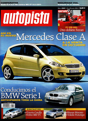 Prueba Comparativa: Volkswagen Golf 1.9 TDI DSG/Golf 2.0 GTI DSG. Contactos: BMW Serie 1, Seat Toledo Prototipo, Toyota Corolla, Volvo S60 T5, Nissan Murano. Nuevo Mercedes Clase A. Prueba Comparativa: MG ZT 2.0 CDTi/Saab 9.3 2.2 TiD 6 vel. G.P. de EE.UU. de F1. Fórmula Nissan. Rallye de Orense.