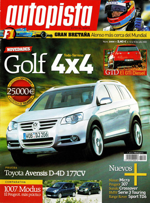 Prueba del Toyota Avensis Wagon 2.2 D-4D CAT Executive. Prueba Comparativa: Peugeot 1007 1.4 HDI/Renault Modus 1.5 DCI. Prueba de larga duración del Citroën C4 1.6 HDI. Alquiler de vehículos en verano. Contactos: Kia Rio, Suzuki Swift Sport, BMW Serie 3 Touring, Nissan Micra, Range Rover Sport TDV6, Peugeot 107 HDi, Peugeot 307 CC 2.0 HDi. G.P. de Gran Bretaña de F1. Rallye de Avilés.