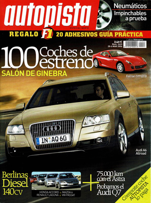 Prueba del Audi Q7 3.0 TDI. Prueba Comparativa: BMW X5 3.0d Aut./Mercedes ML 320 CDI/Volvo XC90 D5. Preuba Comparativa: Renault Laguna 2.0 dCi/Volkswagen Passat 2.0 TDI/Honda Accord 2.2 i-CDTi/Mazda 6 2.0 CRTD. Salón de Ginebra. Nuevo Ferrari 599 GTB. Contactos: Alfa Romeo 159 Sportwagon, Citroën C3 GNV y BMW Z4 M. Entrevista con Pedro de la Rosa. Cuenta atrás para la F1 2006. Prueba Racing: Nissan Micra Copa de Rallyes.