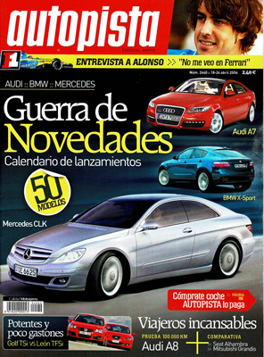 Prueba Comparativa: Volkswagen Golf 1.4 TDi (170CV)/Seat León 2.0 FTSI (185CV). Prueba Comparativa: Mitsubishi Grandis 2.0 DI-D/Seat Alhambra 2.0 TDI. Prueba Comparativa: Kia Picanto 1.1 CRDI/Peugeot 1.7 1.4 HDI. Prueba de larga duración del Audi A8 4.2. Técnica: revolución híbrida. Nuevo Mercedes Clase E. Entrevista con Fernando Alonso. Así va el Mundial de Rallyes. Champ Car World Series. Seat Cupra GT Lamborghini.