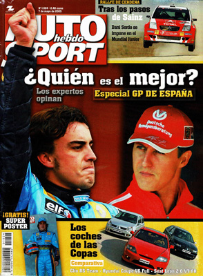 Salón de Barcelona. Prueba Comparativa: Hyundai Coupé V6 Full/Renault Clio Sport Team/Seat León 1.8 20VT FR. Al volante: Fiat Croma, Mercedes Clase B y Renault Modus 1.5 dCi 105CV. Rallye de Cerdeña. 1000 Miglia. Avance del G.P. de España de F1. World Series by Renault en Zolder. WTCC y FIA GT en Magny Cours. Racing for Spain. Europeo de Montaña en Austria.