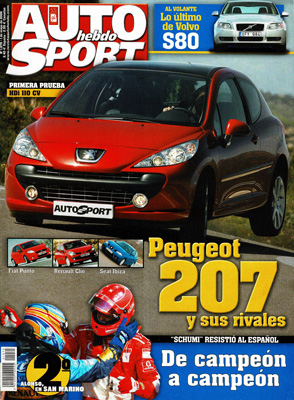 Prueba del Peugeot 207 GT 1.6 HDi 110 CV. Prueba del Hyundai Tucson 2.0 CRDi Style. Prueba Comparativa: Subaru Legacy Spec. B/Audi A4 3.2 FSI Quattro. Al volante del Volvo S80. Museo Mercedes. G.P. de San Marino de F1. Rallye de Tierra de Granada. Raid de Túnez.