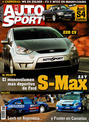 Prueba del Audi S4 Cabrio. Al volante: Ford S-Max y Dodge Caliber. Novedades: BMW Serie 3 Coupé y Chrysler Crossfire SRT6 Cabrio. Rallye de Argentina. Avance del G.P. de Europa de F1. Subida a Totana. Mundial de Turismos en Magny-Cours.