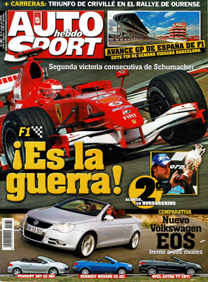 Prueba Comparativa: Peugeot 307 CC HDi/Renault Mégane Coupé Cabrio dCi/Opel Astra Twin Top CDTi. Salón de Vigo. G.P. de Europa de F1. Avance Especial del G.P. de España. Al volante: Volkswagen Eos, Audi Allroad 2006, Hyundai Sonata CRDi y Suzuki SX-4. Rallye de Orense. Entrevista con Renato del Bino, director de Alfa Romeo España. Avance del Rallye Transibérico.