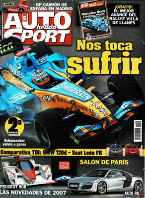 Prueba Comparativa: Seat León FR/BMW 120d. Novedades del Salón de París. Al volante del Volvo C30. Desafío Peugeot en el Rallye de Ferrol. Autocross en Alhama, Murcia. Prueba Racing del Fórmula BMW. Entrevista a Nigel Mansel.