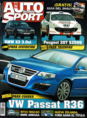 Prueba del BMW X3 3.0si. Nuevo Volkswagen Passat R36. Al volante: Alfa Romeo 147 Q2, BMW Serie 7 Hydrogen, Volvo S80 3.2. Rallye de Nueva Zelanda. Rallye de Tierra de Cáceres. Fórmula 1: el nuevo coche de Fernando Alonso. Clásicos: Tour de España. Prueba Racing: Peugeot 207 S2000.