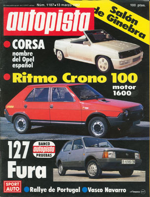 En portada dos nuevos Seat, el Ritmo Crono y el Fura. Salon de Ginebra. Contacto del Seat Ritmo Crono con 4 páginas firmadas por Arturo Andres. Prueba del Seat Fura CL de 3 puertas. Rallye de Portugal. Consultorio.