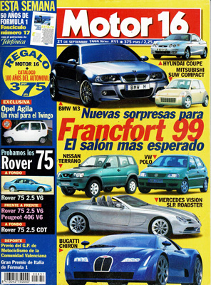 Prueba Comparativa: Peugeot 406 SV V6/Rover 75 2.5 V6 Club. Prueba del Rover 2.0 KV6 Classic. Prueba del Rover 75 2.0 CDT Classic. Novedades: BMW en Francfort, nuevos Mercedes, Mitsubishi SUW Advance y Compact, Volkswagen Polo. Campeonato del Mundo de Rallyes. G.P. de Italia de F1.