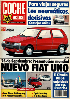 Nuevo Fiat Uno. Nuevo Daihatsu Applause. Joyas subastadas en París. Prueba Comparativa: Ford Sierra 2.0i Longway/Volkswagen Passat Variant GL. El usuario enjuicia su coche: Citroën BX GTi. Las supersticiones de los pilotos. El vendedor de vehículos usados. Prueba Comparativa: Opel Corsa Joy/Renault 5 Blue Jeans. Prueba de la Suzuki GSX 1100. El coche de Chico Ibáñez Serrador. Turismo en Aracena.