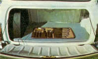Para los equipajes, hay bastante. El maletero, sin ser una enormidad, es bastante amplio, mucho más de lo que exteriormente podría pensarse; como su forma es bastante cúbica se le puede aprovechar al máximo. Luego, en el interior, tenemos una bandeja corrida, dividida en dos partes por el cuadro, con bastante hueco para objetos heterogéneos. No obstante, lamentamos la ausencia de una guantera con cierre de llave, que un coche de este precio debiera tener inexcusablemente. En las puertas, dos amplísimos huecos, a todo lo largo de las mismas, con bastante espesor, y abiertos por arriba, lo que permite colocar objetos de gran altura. Detrás, los descansabrazos laterales, son realmente las tapas de otros dos importantes huecos, y todavía queda la repisa tras el respaldo, que si bien queda casi a la altura de la parte superior del mismo, es bastante profunda. En conjunto, con buena organización, su puede transportar un número importante de maletas, paquetes y objetos diversos.