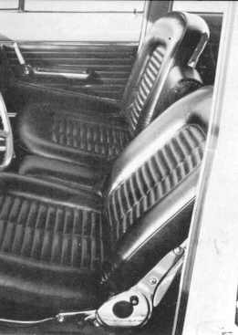 En el "GT" la consola central separa materialmente los asientos y deja espacio para un pequeño cajón donde guardar objetos manuales, tales como mapas, paquete de cigarrillos, gafas, etc. En la misma consola, y más hacia adelante, más a la mano del conductor, la palanca de cambios, muy corta, al estilo europeo, y forrada con fuelle de cuero, lo que le confiere un aire más deportivo. Algo más adelante, un reloj eléctrico. Los asientos tienen respaldos abatibles, y pueden alcanzar casi la posición horizontal, formando un solo plano con los de atrás. Se deslizan, asimismo, sobre carriles, regulándose a voluntad la distancia al volante de dirección, que sale, bajo el salpicadero, en una posición muy cómoda.