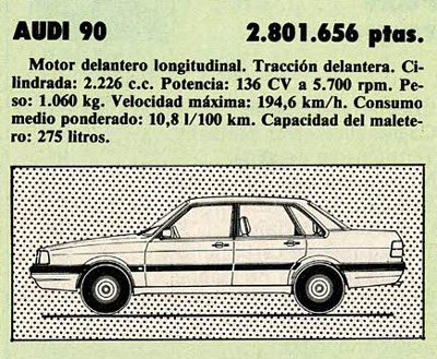 En resumen, el Audi nos parece el mejor en cuanto a comportamiento en carretera y efectividad. Le supera el Mercedes en cuanto a consumos y capacidad de maletero, pero no en versatilidad, ya que el Mercedes solo tiene dos puertas; pero sobre todo el de la estrella se dispara en cuestión de precio. Frente al BMW, el Audi lo supera en todo menos en consumos, pero también hay que pensar en la diferencia de prestaciones e incluso en las 160000 pesetas más del 320. El rival más próximo podría ser el Alfa, cuya juventud y espectacularidad de diseño puede decidir a bastantes compradores, pero la fiabilidad alemana es, en este caso, un argumento de peso. Y, por último, el Peugeot se queda claramente superado, pero tiene a su favor un precio muy interesante.