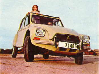 En rectas, o en bajadas, llega a superar incluso a otros coches equivalentes, como, por ejemplo, el Seat 600-D. Les supera porque, como se ha dicho antes, el motor del Dyane permite mantener un régimen alto, de forrma constante, sin detrimento mecánico. Es decir, que con el Dyane se puede ir pisando a fondo el acelerador durante mucho tiempo seguido, sin que sufra de forma anormal el motor.Y claro, de esta forma se pueden conseguir velocidades medias idénticas o superiores a otros coches similares, aun cuando pudiera parecer que la lentitud en las cuestas habría de ser un handicap insalvable. La velocidad máxima real es, en efecto, de 100 km/hora.