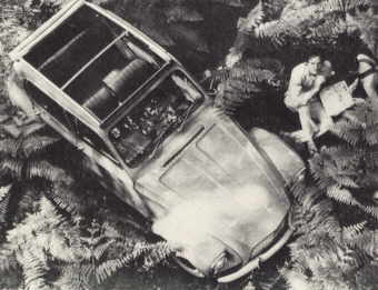 El puesto de conducción, en cambio, es muy racional. Los pedales quedan a buena altura, y se manejan con facilidad. El volante, queda en una posición tipo pero resulta cómodo. El suelo, muy blando y cómodo, por la inclusión de mullido bajo la alfombra de goma. Esto, en un viaje largo, produce un agradable descanso a los pies; pero el mullido no queda muy bien sujeto y a veces la alfombra se enrolla bajo los pies. La visibilidad es buena al frente y a los costados. Mala, muy mala, en cambio hacia atrás, detalle que, al parecer, no les ha preocupado ni mucho ni poco a los fabricantes, porque, como hemos dicho antes, el espejo retrovisor no queda muy bien parado en ocasiones.