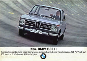 La empresa alemana Bayerische Motoren Werke nos está acostumbrando a lanzar después de cada uno de sus modelos berlina una versión deportiva más o menos potente. Después de los numerosos cambios del 1500 que llegó a ser un 2000 TI, ahora es el 1600 Jubilé el modelo que ha servido de base al 1600 TI. Está dotado de la misma carrocería que la berlina normal, pero tiene mucha más potencia. Quede bien entendido que hemos probado uno de los primeros coches de este modelo vendidos en Francia, y aunque las condiciones atmosféricas no eran muy buenas, hemos podido apreciar las excelentes condiciones del automóvil probado.