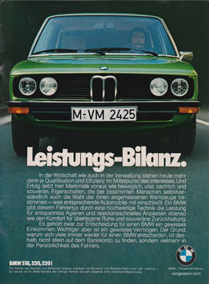 A nuestro juicio, los dos principales logros del 520-i son la línea moderna y la suspensión netamente mejorada. Por lo demás, conserva las cualidades habituales de la marca, como la estabilidad, frenada, caja de cambios y puesta a punto del motor. Sin embargo, este motor de cuatro cilindros posee una energía insuficiente para hacer frente al elevado peso del nuevo modelo. La velocidad punta es buena, pero la capacidad de recuperación no está a los niveles que se espera. Igualmente, el salpicadero, bien dispuesto, no hace olvidar en el interior los asientos duros y la relativa falta de espacio posterior. Este bello y buen coche, muy bien acabado, tiene, por otra parte, un precio elevado y numerosas opciones, incluso las más imprevistas. Para el futuro, el 520 espera un motor de seis cilindros y se convertirá en el 525, a fin de reemplazar al 2500, ya en declive. Así corre la cerveza por Munich.