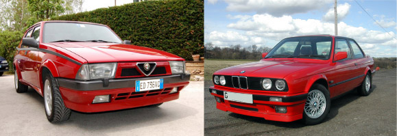 Similitudes hay muchas: carrocería clásica tres volumenes, de línea bien conocida y no especialmente aerodinámica, idéntica longitud y anchura, buen maletero y 4/5 plazas. En cuanto a la mecánica, propulsión trasera, potencias reales justo por debajo de los 140 CV (suficiente para superar los 200 en ambos casos), implantación de frenos, servodirección. Y en ambos casos un comportamiento en carretera que permite, cada uno con sus peculiaridades, practicar una agradable, segura y gratificante conducción deportiva, que puede sorprender a más de un espectador poco avisado, dada la apariencia inocua de los coches.