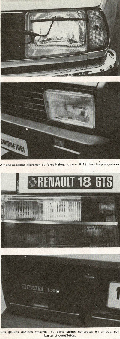 Existen unos detalles de confort en el R-18 de los que no dispone el Seat, tales como son: el cierre electromagnético de las puertas, los elevacristales delanteros eléctricos, los limpialavafaros eléctricos y el retrovisor exterior reglable desde el interior. Naturalmente ello se refleja en el superior precio franco fábrica que tiene el Renault (18.800 pesetas).