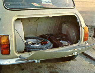 Y, en cuanto a las gomas antes citadas, nos ratificamos en el hecho de que, a los pocos deslizamientos de cristales, ya quedaban colgando, fuera de sus canales de ajuste. De visibilidad, muy bien. Esto no es un secreto, porque el coche, al menos en su carrocería, es harto conocido. En todo caso, la visibilidad hacia atrás, tan fundamental para la seguridad en casos de adelantamientos u otras maniobras, queda algo mermada, no por la existencia de ángulos muertos en la chapa, sino por deficiencia del espejo retrovisor, que es sencillamente escaso. Como remate de esta inspección a coche parado, fijamos la atención en el maletero, situado en la parte de atrás, a espaldas y bajo los asientos traseros, y aunque el espacio es bastante reducido, es lo suficientemente proporcíonado y racional como para introducir un equipaje normal. En este modelo, la rueda de repuesto, que está alojada en la base del maletero, queda descubierta. Se han ahorrado la tapa, en esa purga de elementos no imprescindibles, a fin de abaratar el vehículo. Y esta tapa, aunque, efectivamente, no es imprescindible, será un problema cuando la rueda de repuesto esté sucia por el uso.