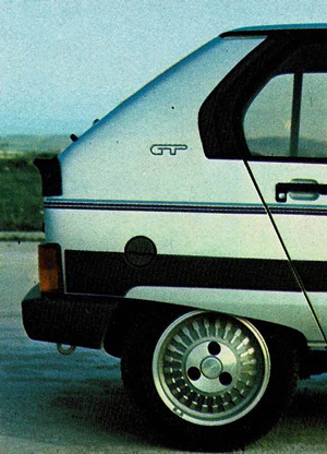 Para comenzar, habrá que referirse a la buena presentación que ofrece con ese color gris perla, rojo Valleíunga o negro, los tres muy apropiados para un coche de vocación deportiva. Completan esta fisonomía las aparentes llantas de aleación ligera, el agresivo frontal, bajo el cual un leve spoiler mejora las apariencias, lo mismo que el breve alerón trasero, la ancha banda lateral en material plástico y demás embellecedores adoptados. Pero también es de resaltar el carácter a la vez utilitario que se le ha dado a este coche, de un lado por sus cinco puertas y de otro por la posibilidad de abatir los asientos posteriores, independientemente uno del otro, por si se quiere aumentar el espacio para el equipaje, dando la posibilidad de que viaje atrás una persona y, lógicamente, dar si se desea la posibilidad también de poder destinar toda la parte posterior al equipaje, cuando no viaje nadie atrás y se abatan los dos asientos posteriores.
