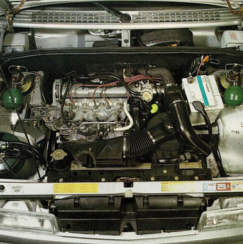 Si en el GT se recurría a un carburador doble, en el Sport se utilizan dos dobles, con un nuevo colector en aluminio y cuatro cortas trompetas de admisión. El trabajo realizado ha sido magnífico. Se obtienen 126 caballos (un 20 por 100 más que en el GT) y, sobre todo, una curva de par muy progresiva y plana. Aunque el régimen de par máximo se sitúa muy alto, a 4200 rpm, a 25OO rpm ya tenemos los 16,5 mkg de la versión GT. Con esto queremos decir que el motor del Sport es enormemente progresivo, siendo fácil de conducir incluso en ciudad, ya que a partir de 2000 rpm podemos salir en 5ª velocidad sin problemas.