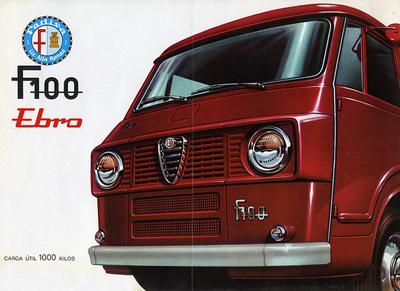 El vehículo F-100 Ebro, fabricado por F. A. D. I. S. A. en diez versiones de origen, constituye una de la gama más amplia, racional y moderna del transporte ligero en España. La experiencia de la gran marca italiana Alfa Romeo en el sector de vehículos de transporte se ve reflejada en las numerosas cualidades que posee este vehículo.
