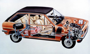 El motor transversal es una solución aceptada ya como ideal en este tipo de coches, de no demasiada potencia, pero en los que se debe aprovechar al máximo el espacio agrupando todos los elementos mecánicos en el menor volumen posible. Y esto lo consigue plenamente, aparte de esa sensación ya apuntada, por la que aparentemente el pasajero se encuentra en su interior en un coche de más categoría y tamaño. La habitabilidad es francamente buena para un coche de este tamaño con los asientos en posición normal. El porta- maletas, tiene un volumen de 200 dm3., pudiendo pasar hasta los 1.205 dm3. con el abatimiento del asiento.