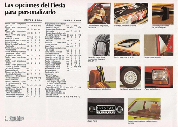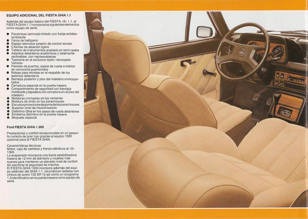 La versión Ghía se refiere, como en ocasiones anteriores, a un determinado grado de acabado, el más completo de los Fiesta, cuya relación completa se incluye en cuadro aparte. El motor de 1,3 l. es también el mayor.