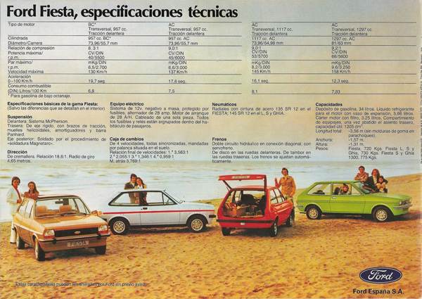 Con un mes de adelanto sobre la fecha prevista, el primer Fiesta salió de las cadenas de montaje de Almusafes el 18 de Octubre de 1.976. Lleva, por lo tanto, algo más de cuatro años de fabricación, en los que ha batido todos los records de producción, para un modelo básico, y de exportación, no habiendo podido hacer lo mismo en el mercado interior a causa de la limitación de sus ventas en el mismo.