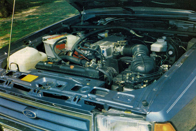 MECANICA: MAYOR SUAVIDAD El motor V-6 de 2.8 litros, en su versión de inyección para el Granada ´82, ha sufrido unas ligeras modificaciones, tendentes a hacer su utilización más agradable y turística. Se pierden 10 CV (al menos en teoría, porque en la práctica apenas sí se nota), siempre al mismo régimen, pero se mejora la elasticidad en bajo y medio régimen; aunque el par máximo es solo de 22 en vez de 22,5 mkg, se consigue 300 vueltas más abajo que antes; y además, de ahí para abajo, el motor tira más. El resultado es una unidad motriz menos “rabiosa”, pero claramente más agradable de utilizar que la anterior, más adecuada para el Capri 2.8i (en el que se sigue utilizando, por cierto).