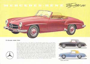El nuevo Mercedes Benz «190-SL» es un coche «sport» turístico de dos plazas, un vehículo utilitario de aspecto deportivo y elegante que es muy rápido en la carretera. Es, por lo tanto, un coche de turismo y vehículo para uso diario, y posee la posibilidad de ser empleado con éxito en competiciones deportivas.