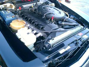 La mejora más importante, es decir, el nuevo motor de seis cilindros de tres litros, aparece bajo el capot del SL tan bien ordenado que parece que el resto del automóvil haya sido construido a su alrededor. En una época en la que el vano motor resulta cada vez más feo, el seis cilindros SL de 1986 constituye toda una excepción: A pesar de todo su modernismo, bajo el capot se encuentra una buena dosis de construcción de motores de los buenos y viejos tiempos. No hay ningún entramado de tubos y conductos; la varilla del aceite está en el lugar correcto y se observa la ancha correa que acciona casi todos los grupos con su eterna durabilidad en la cabecera del motor.